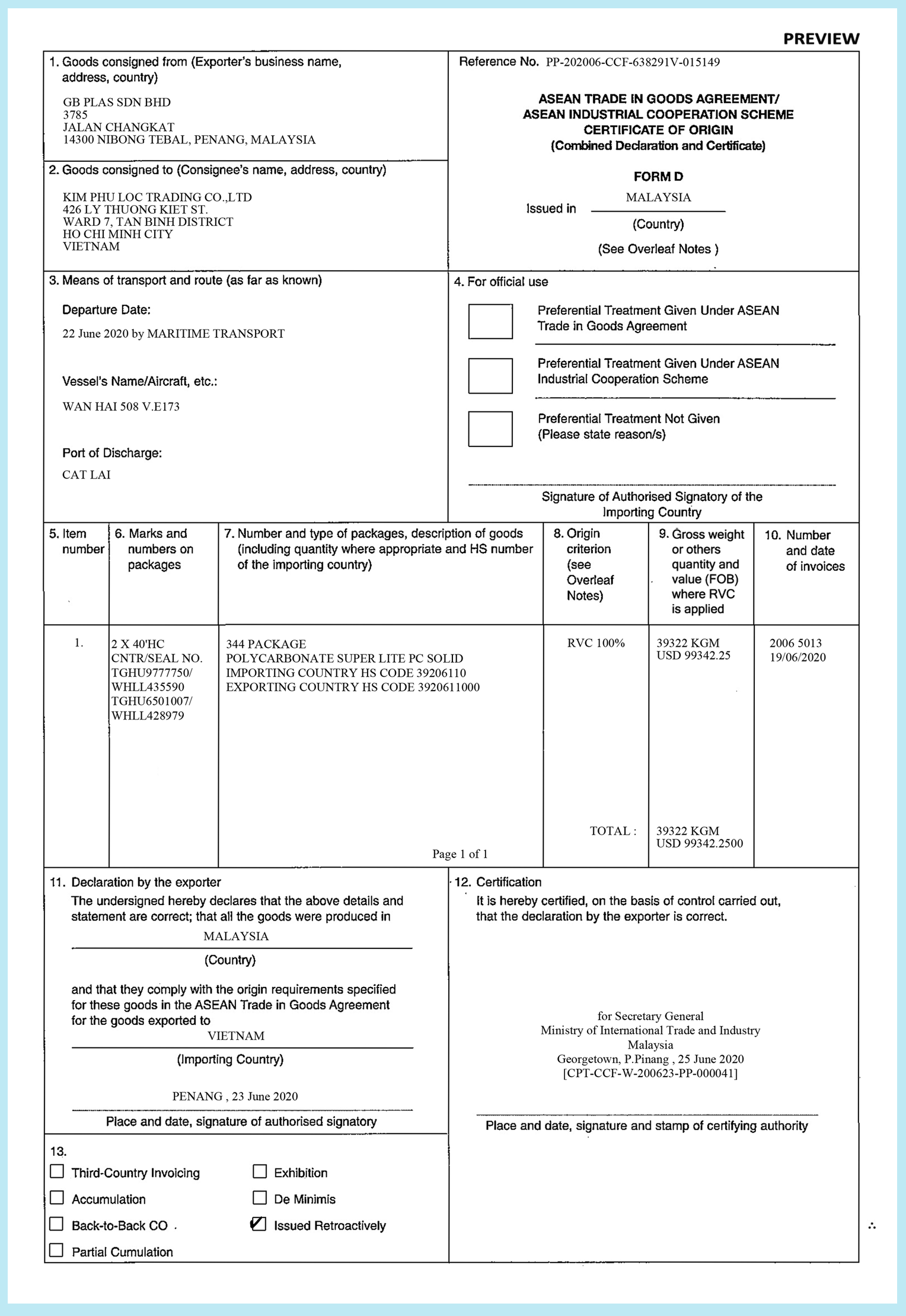| GIẤY CHỨNG NHẬN XUẤT XỨ HÀNG HOÁ | ĐỘ DÀY | QUI CÁCH | |