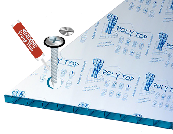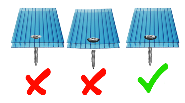 - Do not overtighten screws. Overtightened screws may cause sheet to dimple. A correctly installed fastener will sit flush against the sheet - After screwing points, it may be sealed with a thin bead of 100% neautral silicone.