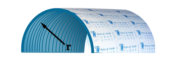 - When cold-bending multiwall polycarbonate, the flutes (ribs or channels) should follow the curve of the sheet. Sheets can be bent in a variety of diameters. Maximum bending radius is in accordance with sheet thickness. - Bend sheet longitudinally, never across sheet width. - Bending the sheet lengthwise maintains its sheet strength and ensures proper drainage. - Avoid over tensing the sheet. Do not flex or install sheets to the point of buckling.